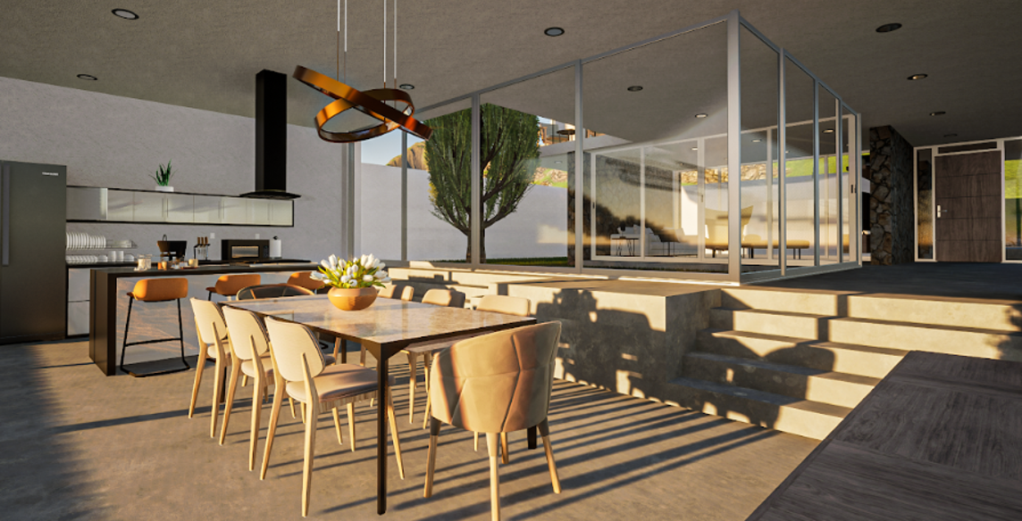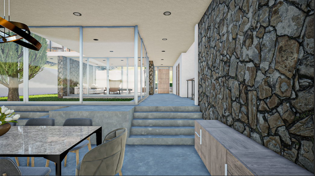 La luz y la transparencia definen el proyecto: grandes aperturas que integran interior y exterior, atmósferas cálidas que cambian con el día y una arquitectura que respira con el paisaje.